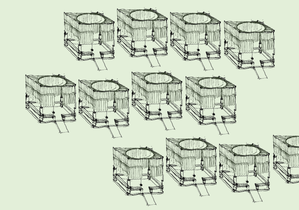 Minton’s architectural practice orients around the re-purposing of construction materials. “A lot of my work is about re-grounding a place,” she explains, “I don’t want anything to go to waste.” In addition to The Stack, Minton is developing a project in Seville that hopes to restore unused and abandoned structures into functional pieces of architecture. One aspect of the project is the removal of bricks from old bottle kilns to make benches for the public. Minton shows me her concept art for the project: an oil painting depicting a child, an adult reading a newspaper, and a pigeon each finding uses for the new set of benches — a multi-generational, multi-species meeting. Clearly, Minton hopes not only to put old materials to new uses but also to inspire novel interactions through her work.