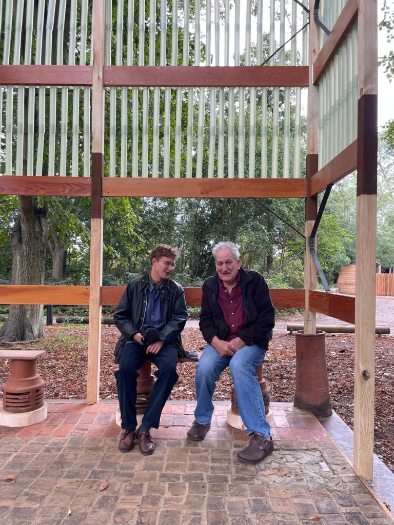 Finding its roots in a conversation with Jesus College’s Master, Sonita Alleyne OBE, The Stack is the product of a long-held ambition to host a student-led pavilion, specifically built in the college by its students. Historically, construction efforts of this kind have failed either due to flagging commitment or design disputes. Conscious of the tension that can exist between design and execution, Minton appears to have taken the challenge head-on: pragmatism has formed a central tenant of her design philosophy; construction materials, including the eponymous chimney pots, are sourced by “digging about” around the back of the college’s Maintenance Department.
