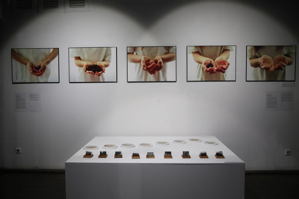 Remaining with the concept of the network, the installation and first part of the Life Lines exhibition that grew from these samples, ‘Naomi – A Life Line’, invited viewers not only to observe but to touch the soil. Small containers of each sample sat in front of folded paper notes—echoing Tyler’s—each inscribed with relevant fragments of Warren’s biography and the means by which the soil had travelled into Ready’s hands. ‘I wanted to bring something really tactile to the viewers’, she says, ‘something that would help create a physical connection with Naomi’s story’.
