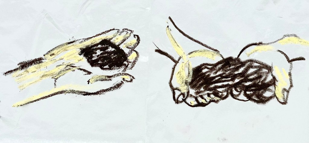 This emphasis on connection is reflected in the months Ready spent researching Warren’s story with a small group of artists assembled by the Soldiers of Oxfordshire Museum as well in the subsequent development of the exhibition. ‘There was a musician, there was an actor,’ she says, ‘we specialise in different types of media […] and also have different heritages’. Over three sessions, what developed between these individuals was both a working group and a shared attentiveness to Warren’s story of survival, to each other, and to the question that presented itself powerfully in Ready’s mind as she began to ideate what would later become Life Lines: ‘how can you map a life?’