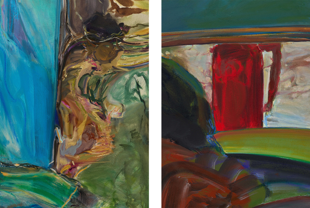 Left: Gas Leak (2026) [detail], by Amelia Barratt. Right: Winter’s Edge (2026) [detail], by Amelia Barratt. Courtesy of the artist and CORPUS, Cambridge. Photography: Stephen James