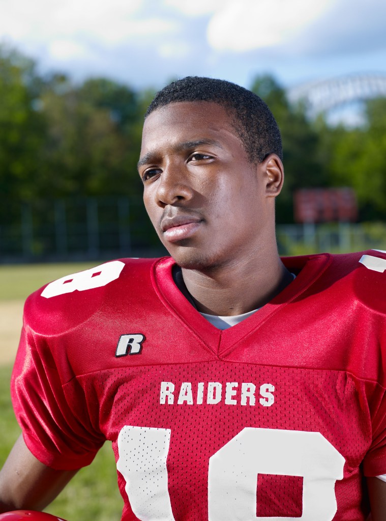 Across To Be Seen, Opie draws together people, bodies, and places to engage viewers in a politicised aesthetic. In photographing children, Opie provokes questions about access and vulnerability: what role does a child play in determining how they are portrayed? How much can a photo really say about a person? In photographing past lovers and celebrity figures, we wonder about the acceptable reach of the camera’s lens: which moments are too intimate to share? When does public image give way to private reality? Some of the most triumphant photos of the exhibition turn this questioning gaze towards the stalwart of American masculinity – the college football player. From 2007 and 2009, Opie photographed football players across multiple states in the US producing a set of vulnerable and deeply moving images. Variously camp, goofy and heartwarming, these photos undermine the toughened image of the ‘young, male athlete’. A player flexes towards the camera in a Superman-themed crop top, the red ‘S’ matching the colour of their mouthguard. Three players stand in line with their red, white and blue base layers peaking out underneath their team shirts – one smiles, another stares down the lens, and the third crosses their arms whilst sporting a slow growing grin. By moving away from her typical subjects, Opie brings granularity to an area of public life that is far too often wrapped in bravado and cliche. Through the lens, she de-romanticises her subjects and presents them as they are: young men, often teenagers, trying to make a name for themselves in a deeply competitive and highly scrutinised industry.
